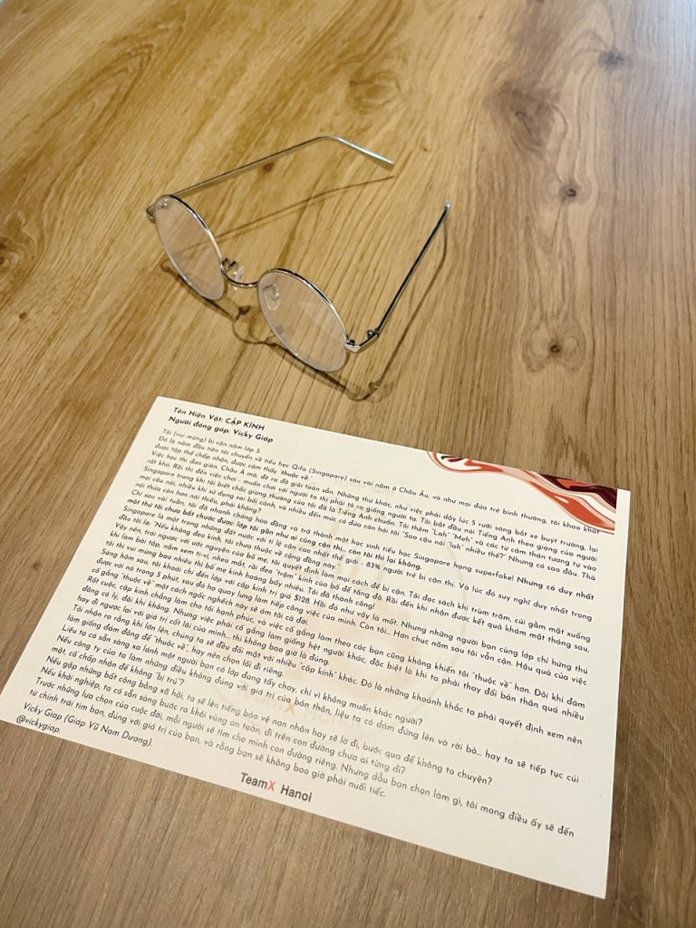 Singapore là một trong những đất nước với tỉ lệ cận cao nhất thế giới – 83% người trẻ bị cận thị. Và lúc đó suy nghĩ duy nhất trong đầu tôi là: “Nếu không đeo kính, tôi chưa thuộc về cộng đồng này.”